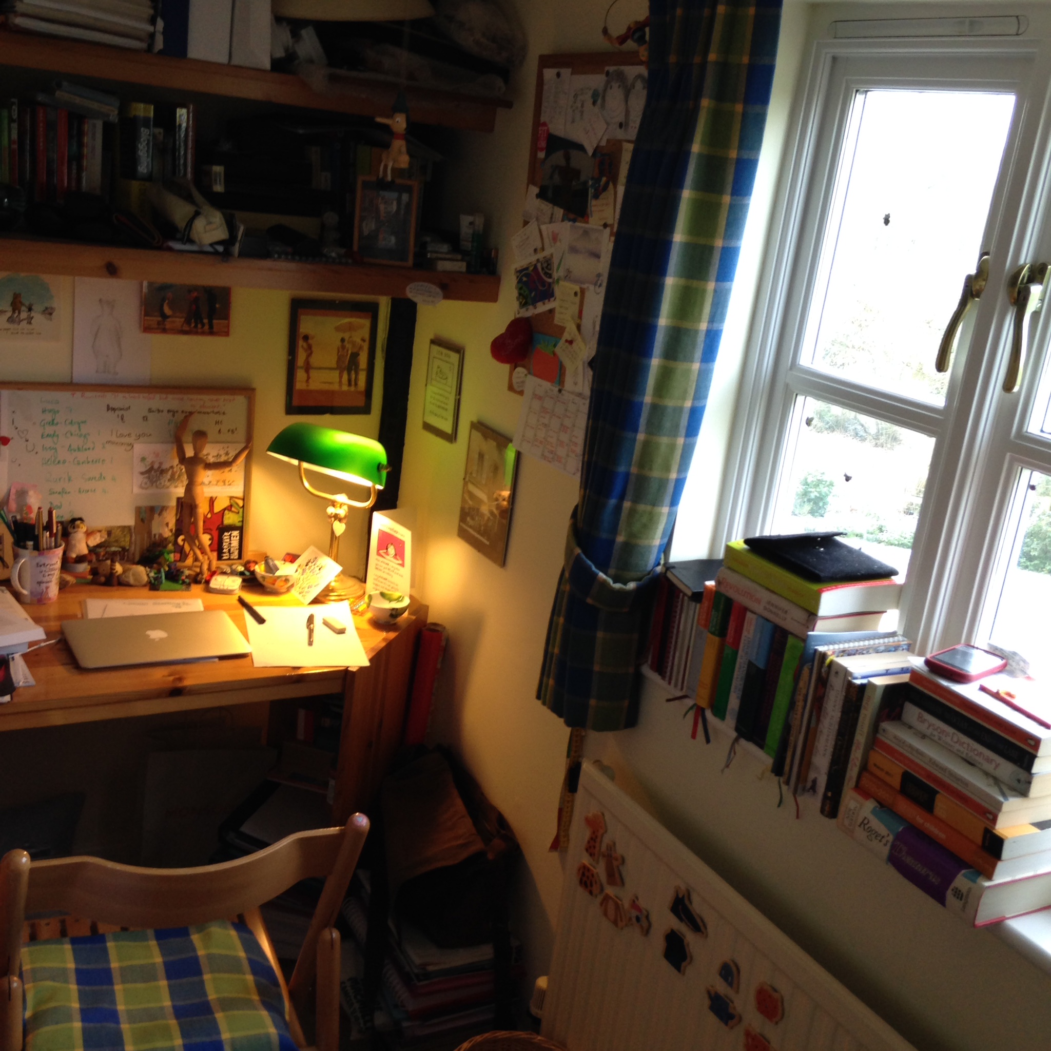 I usually write here happily surrounded by clutter, and books and so many pictures that there really isn’t any space on the walls for more.